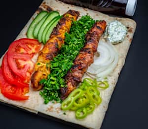 Comes with white rice grilled tomatoes grilled jalapenos and Armenian salad.